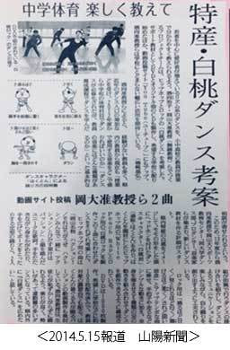- 2014年5月15日(木)、山陽新聞、中学体育で白桃ダンス授業支援へ岡山大考案希望校に教材配布